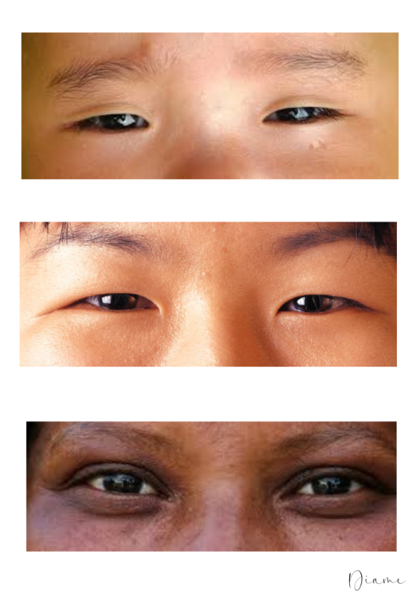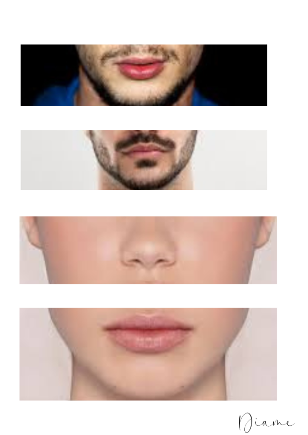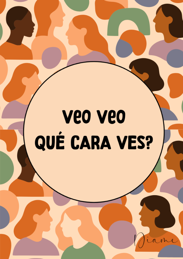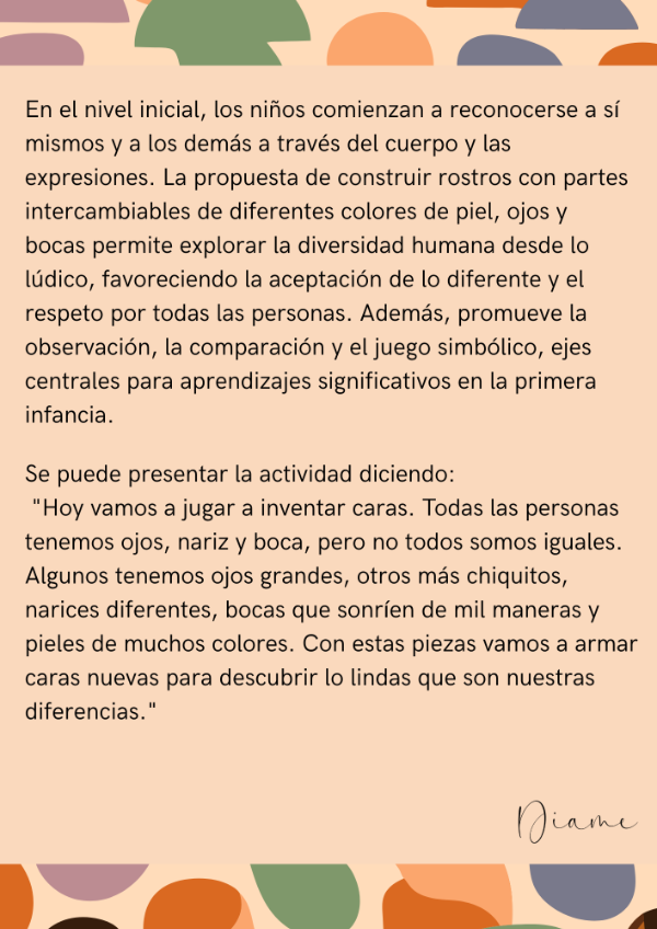 Es un PDF imprimible con más de 50 partes de rostros (ojos, narices, bocas de diferentes colores de piel y rasgos).
